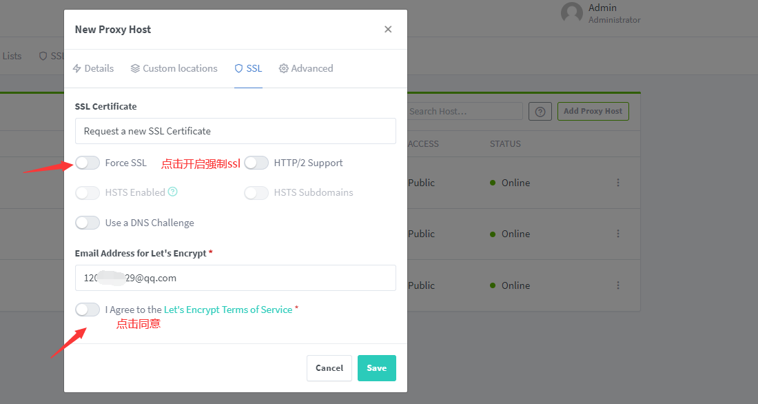 如果需要使用 HTTPS 协议进行反向代理,我们可以在配置界面中进行 HTTPS 协议的配置。